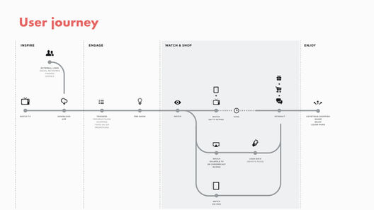 Our goal of the second screen app was to facilitate that impulse to buy. The app synchs with the TV and allows her to quickly see and buy all the products currently shown on TV.